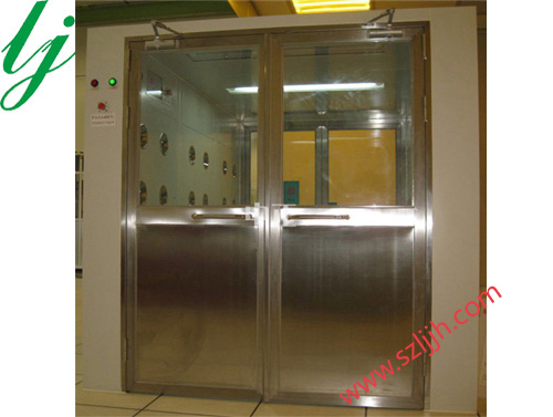 全自動(dòng)紅外感應(yīng)吹淋,單向通道風(fēng)淋,從非潔凈區(qū)進(jìn)入,關(guān)門(mén)后紅外線感應(yīng)有人就吹淋,吹淋時(shí)兩道門(mén)自動(dòng)鎖閉,吹淋后入門(mén)鎖閉,由潔凈區(qū)出去時(shí)經(jīng)過(guò)風(fēng)淋室不吹淋以節(jié)省能源;